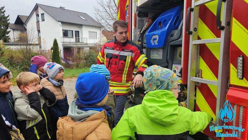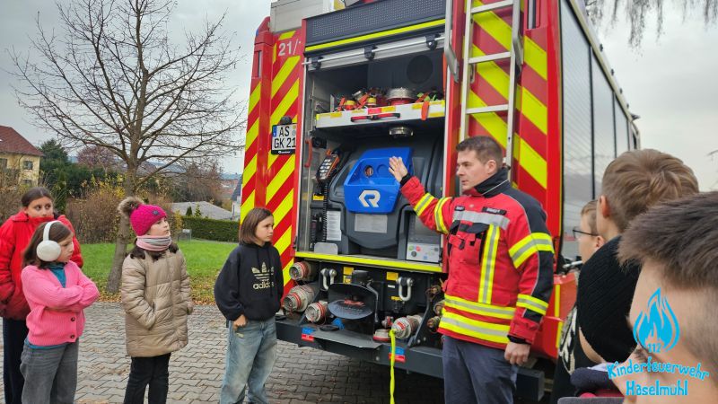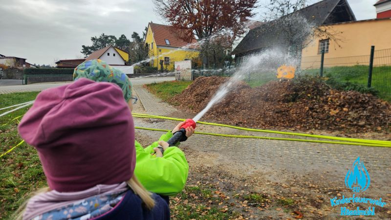 Am 15. November 2025 trafen sich wieder beide Kinderfeuerwehrgruppen am Feuerwehrhaus in Haselmühl. Gruppe 1 mit den 6 – 9 jährigen um 13:00 Uhr und Gruppe 2 mit den 10 – 12 jährigen um 15:00 Uhr. Allerdings trennte beide Gruppen nur die Uhrzeit und nicht das Thema. Denn bei beiden Gruppen stand heute das Thema Löschangriff auf dem Programm. Zuerst absolvierten die Kinder einem theoretischen Teil im Jugendraum. Danach ging es raus auf den Übungsplatz wo unser TLF und unser Jugendwart und Kinderfeuerwehrbetreuer Michael Birner (Burny) bereits auf die Kinder wartete. Gemeinsam wurde Schritt für Schritt ein Löschaufbau aufgebaut und erklärt. Dieser bestand nicht wie bei der Jugendfeuerwehr oder Aktiven Wehr aus B und C Schläuchen, sondern aus kleineren D Schläuchen. Nach vollendetem Aufbau durften die Kinder dann noch mit wenig Wasserdruck das Feuer auf dem Laubhaufen löschen. Es war eine sehr gelungene Kinderfeuerwehrstunde.